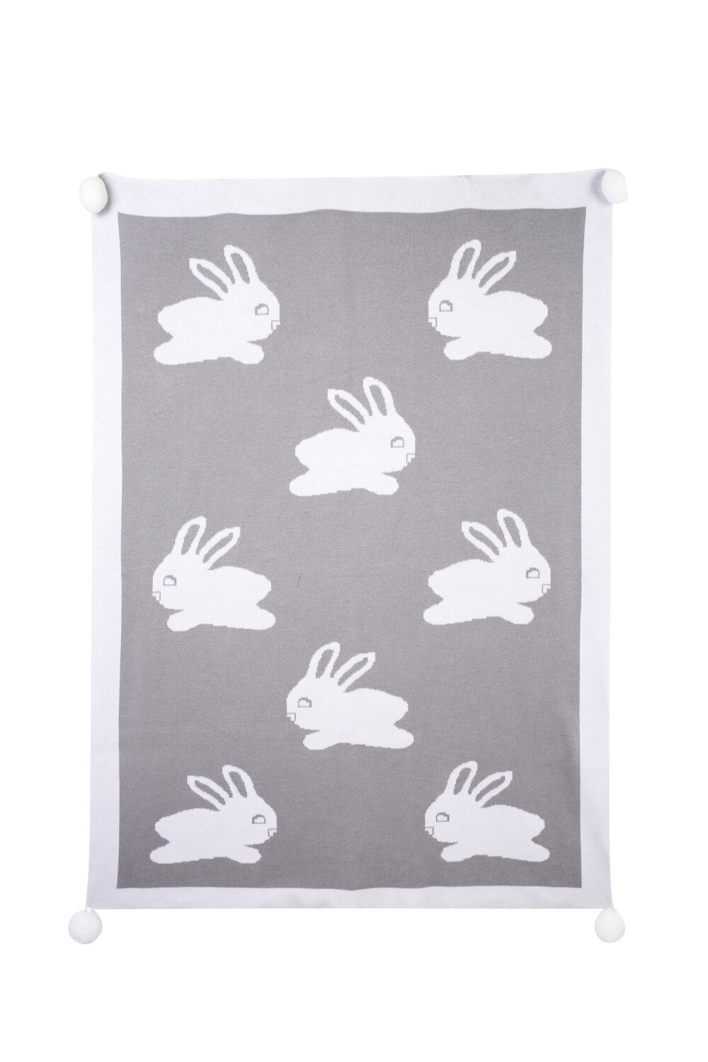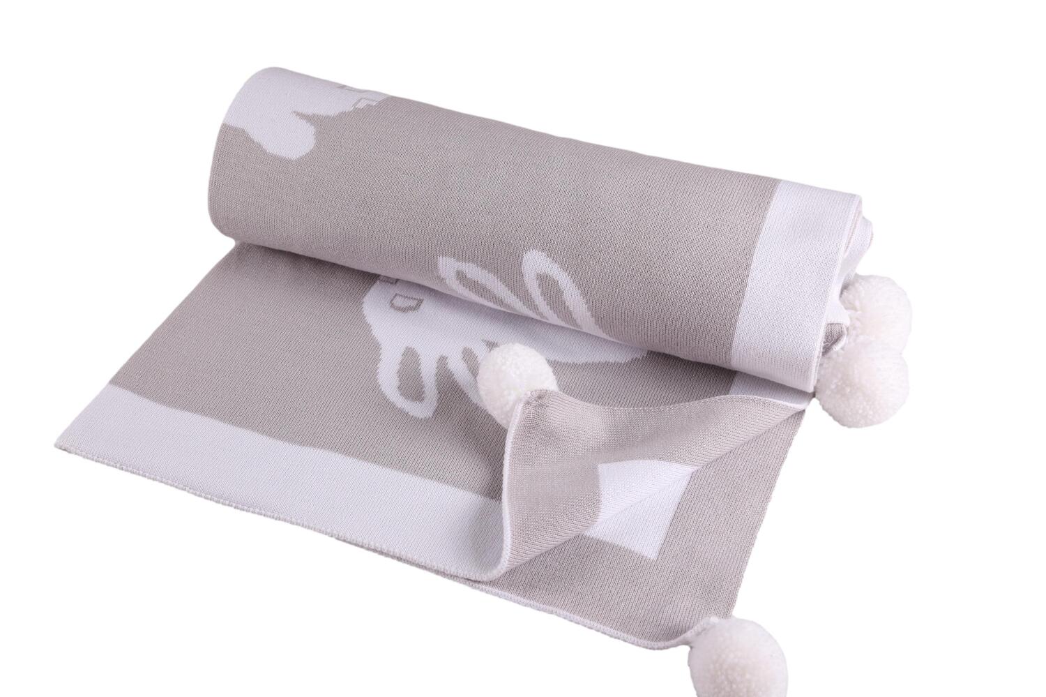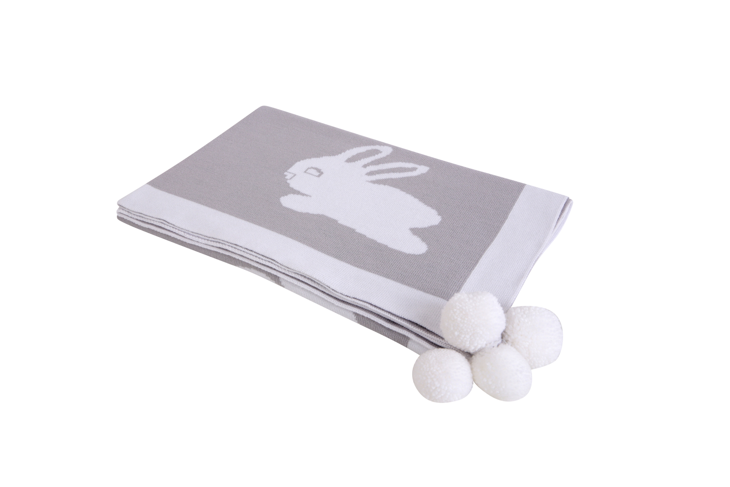 Our Grey Reversible Baby Bunny Blanket with White Pom-Poms