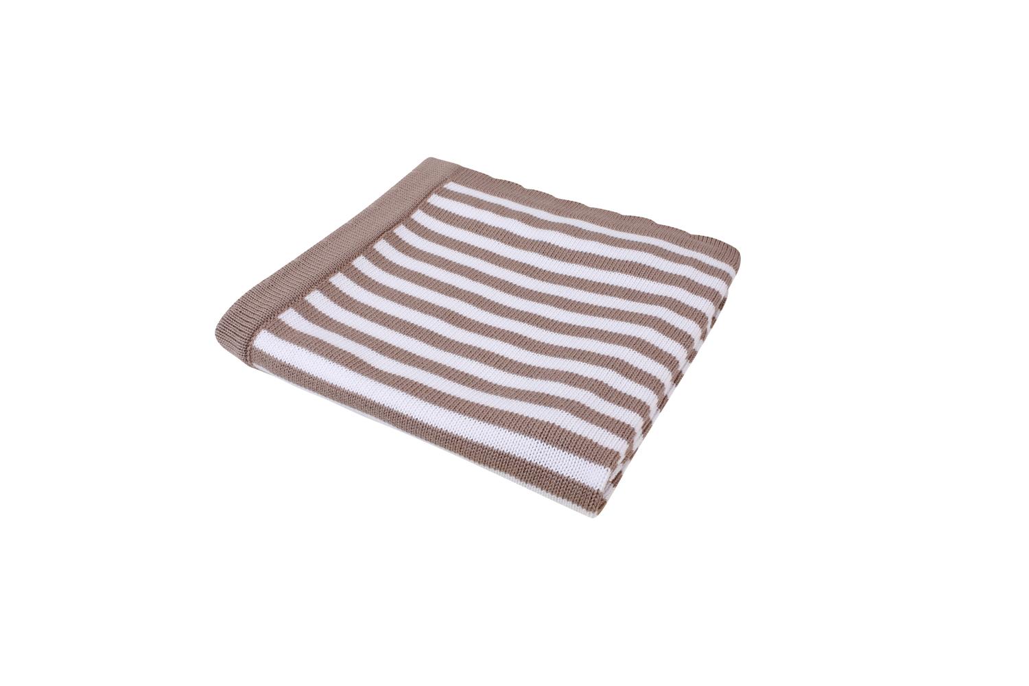 Our Brown & White Stripe Baby Blanket with a Scallop Edge Finish