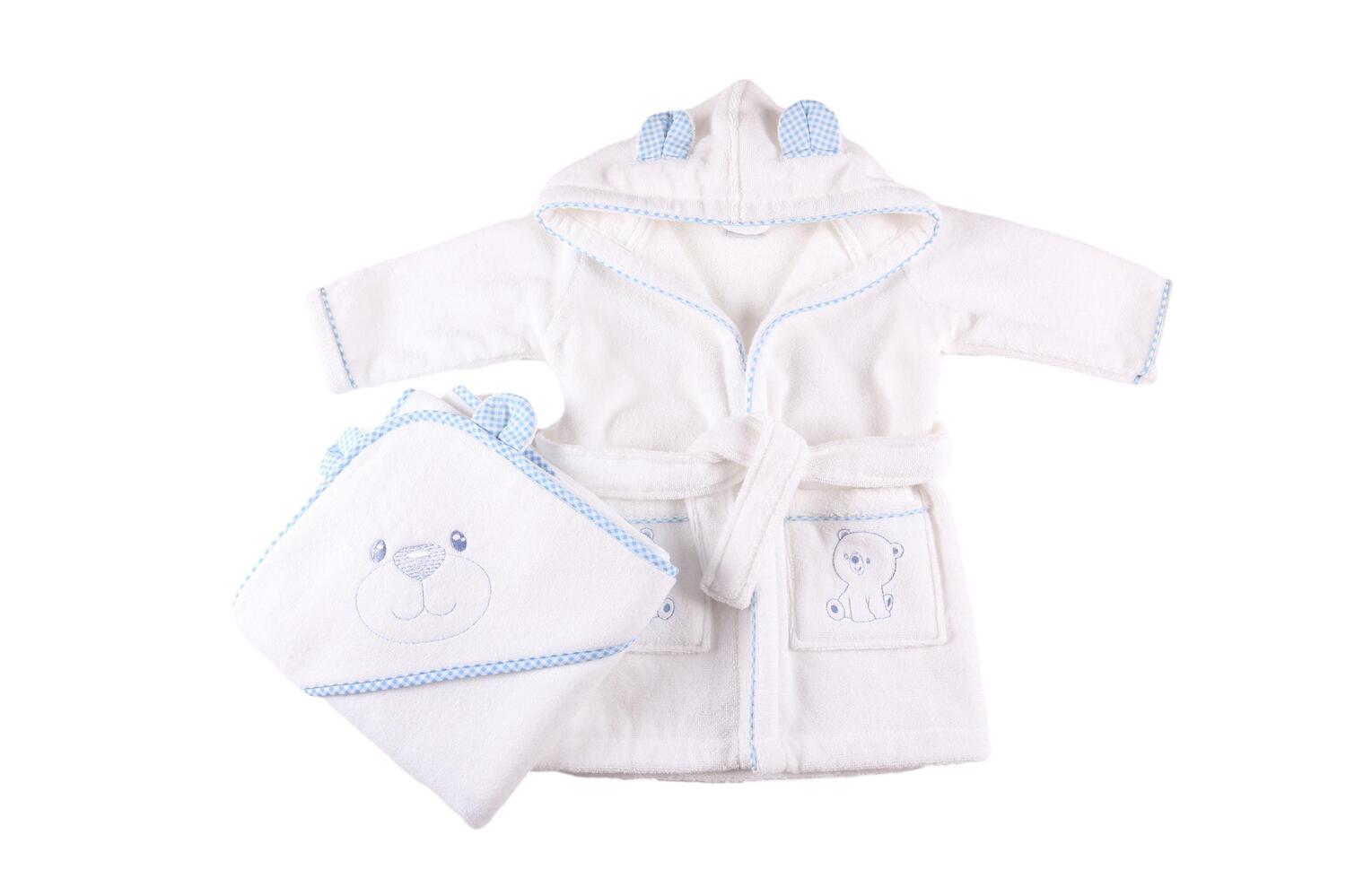 Bear Hooded Bathrobe & Hooded Towel with Blue Gingham Trim