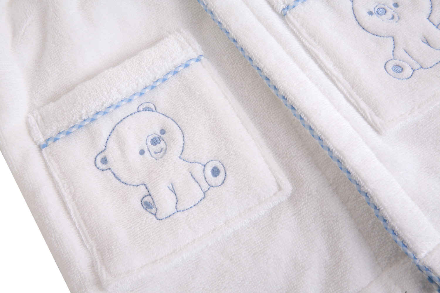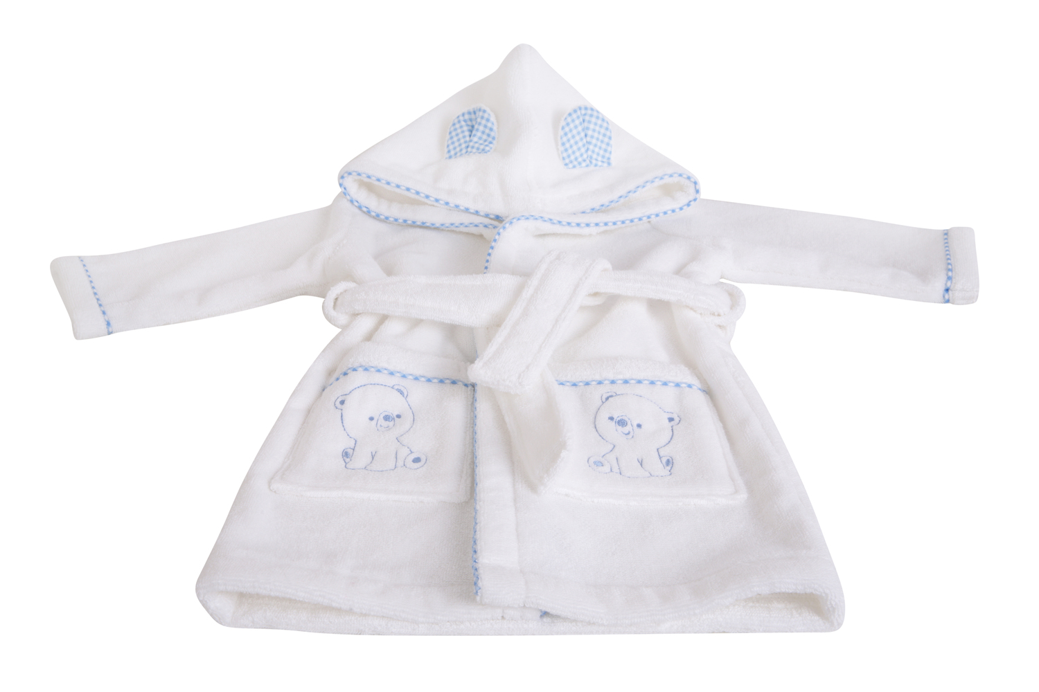 Bear Hooded Bathrobe with Blue Gingham Trim