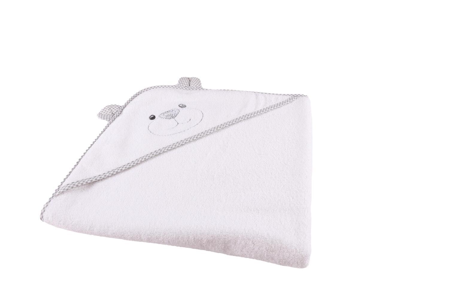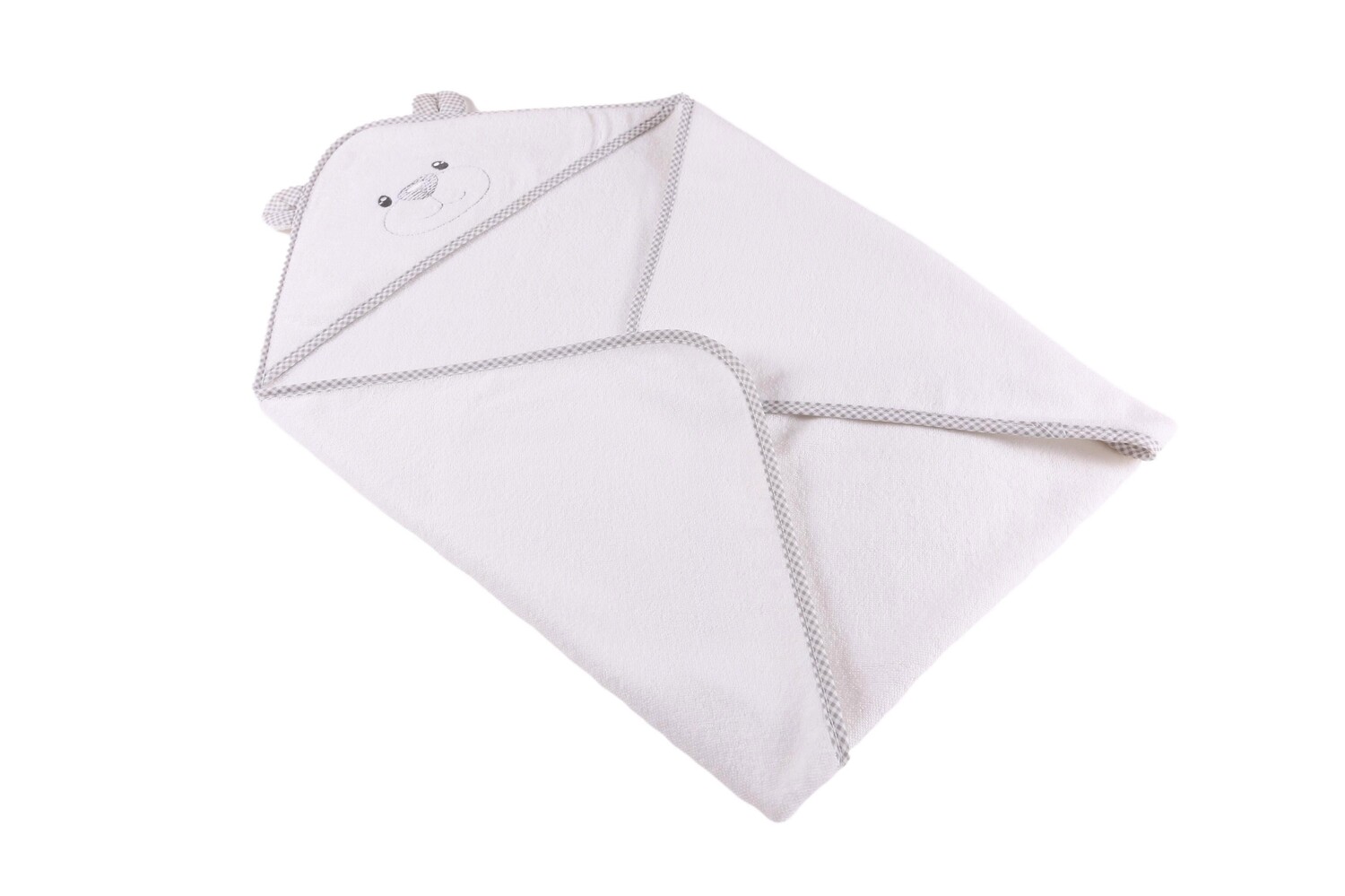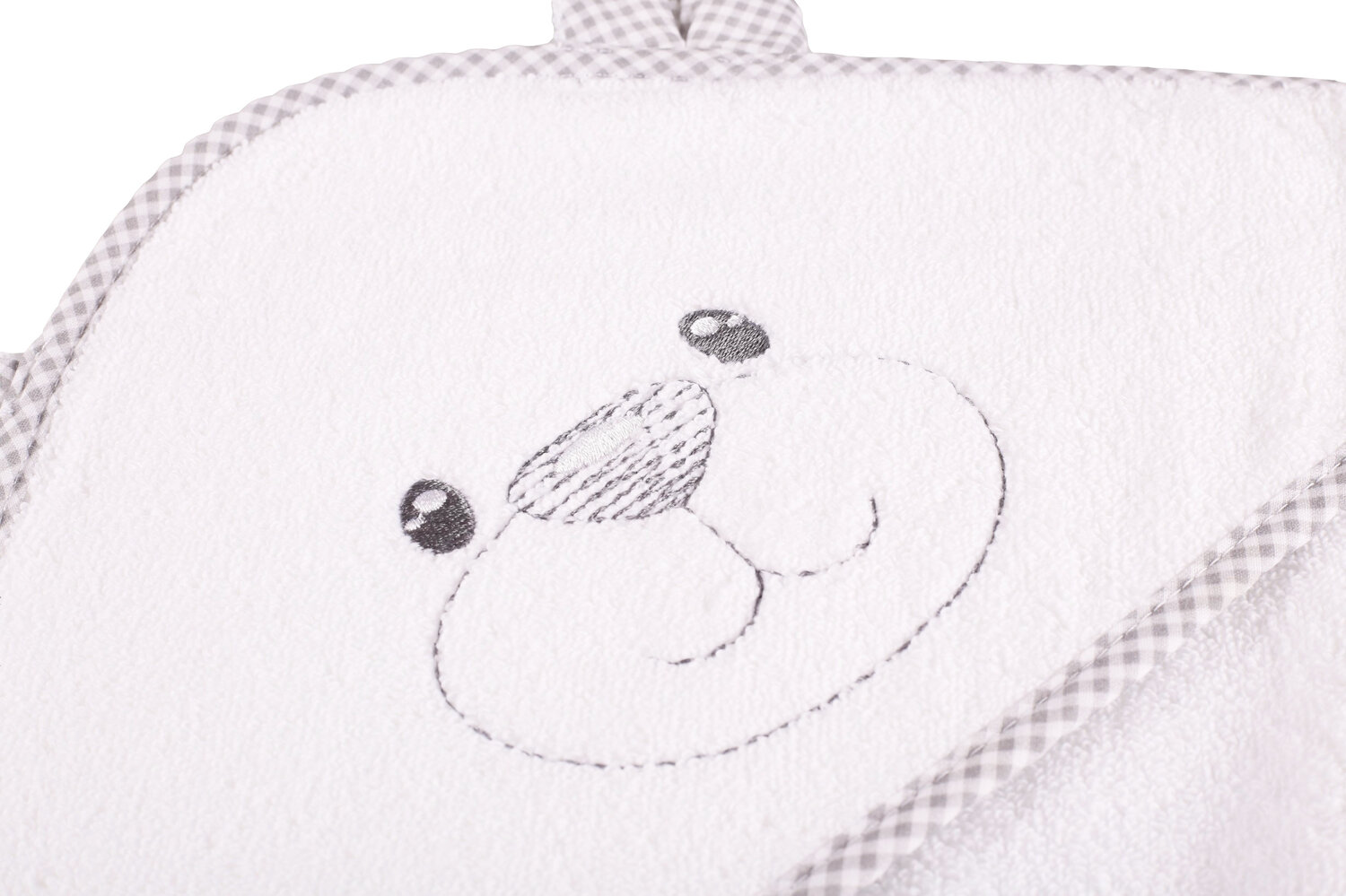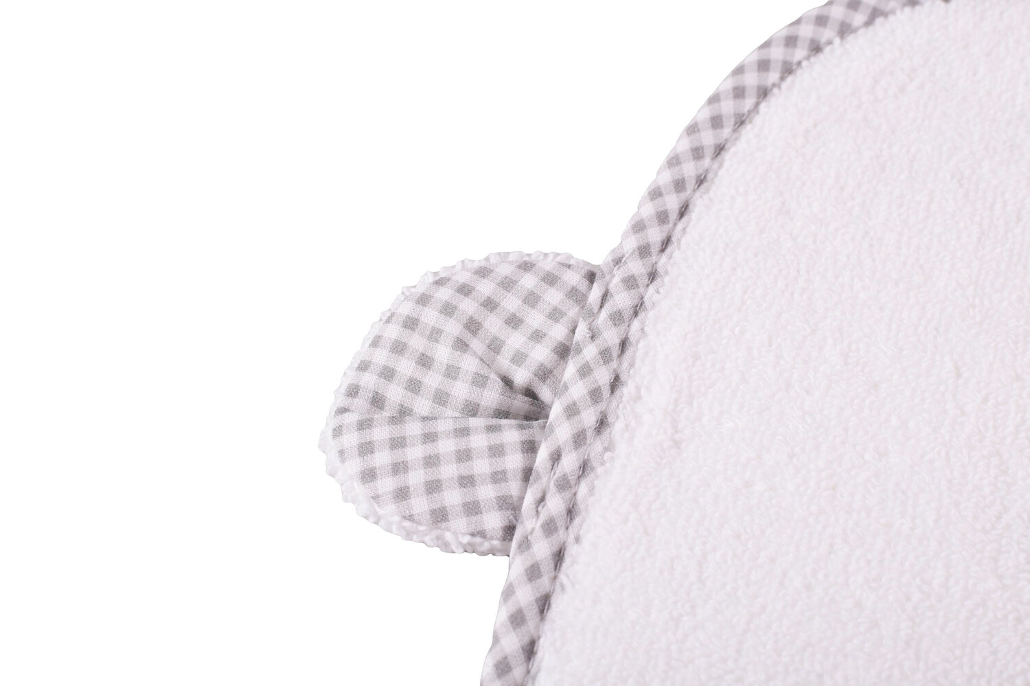 Grey Bear Baby Hooded Towel with Grey Gingham Trim