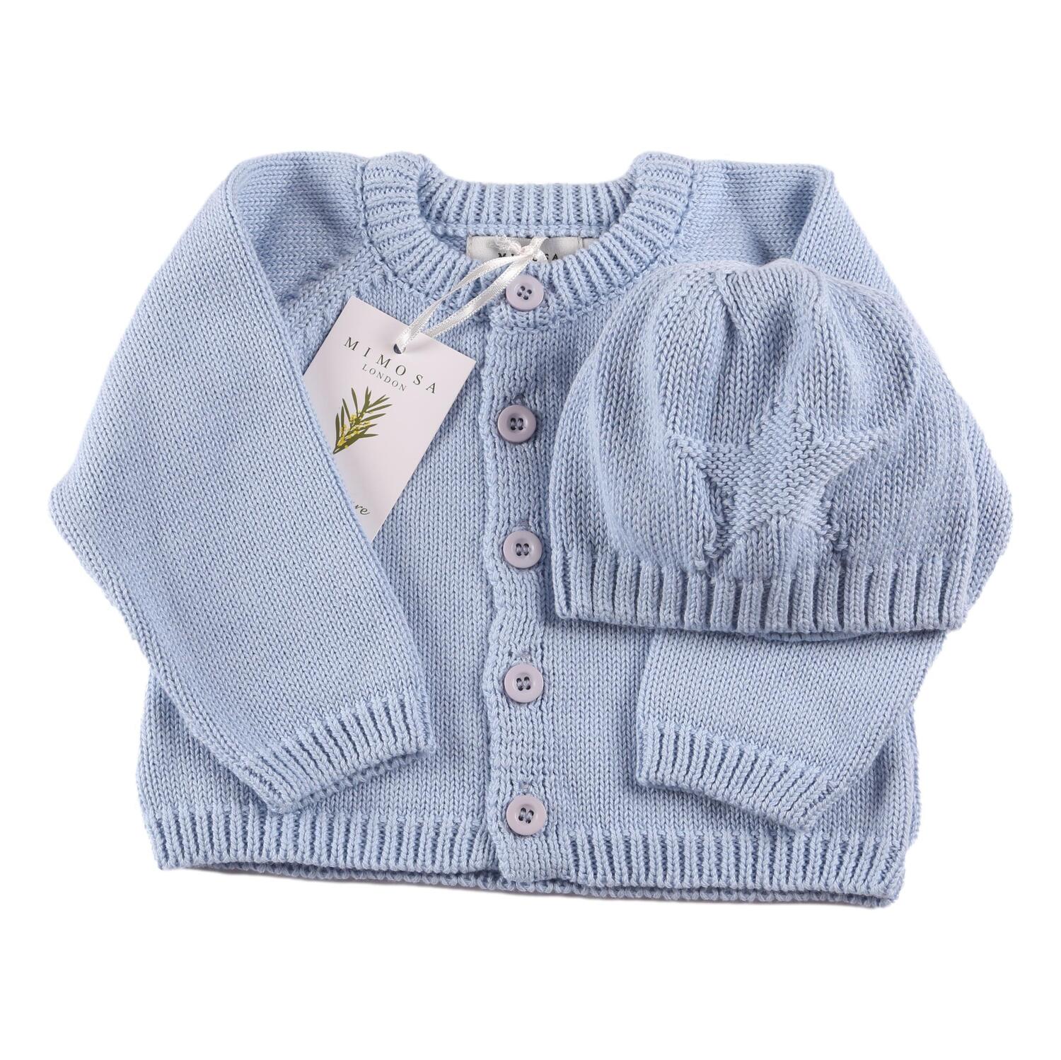 Organic Baby Cardigan & Hat Set - Blue